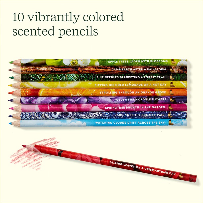 - COLOR OUTSIDE THE LINES: Transform your coloring or drawing into an aromatherapy experience with 10 oil-inflused colored pencils featuring innovative Rub & Sniff technology.