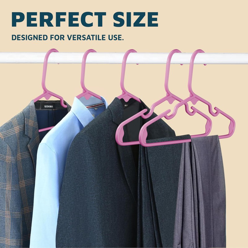 - KEEP ORGANIZED: Upgrade your wardrobe with Lifemaster Kids Clothes Hangers in a stylish pink color. Our hangers come in a pack of 50. Each hanger measures 11.61’’ x 6.5’’ x 0.2’’ inches, perfectly designed for your kids, toddlers, and infant clothing.