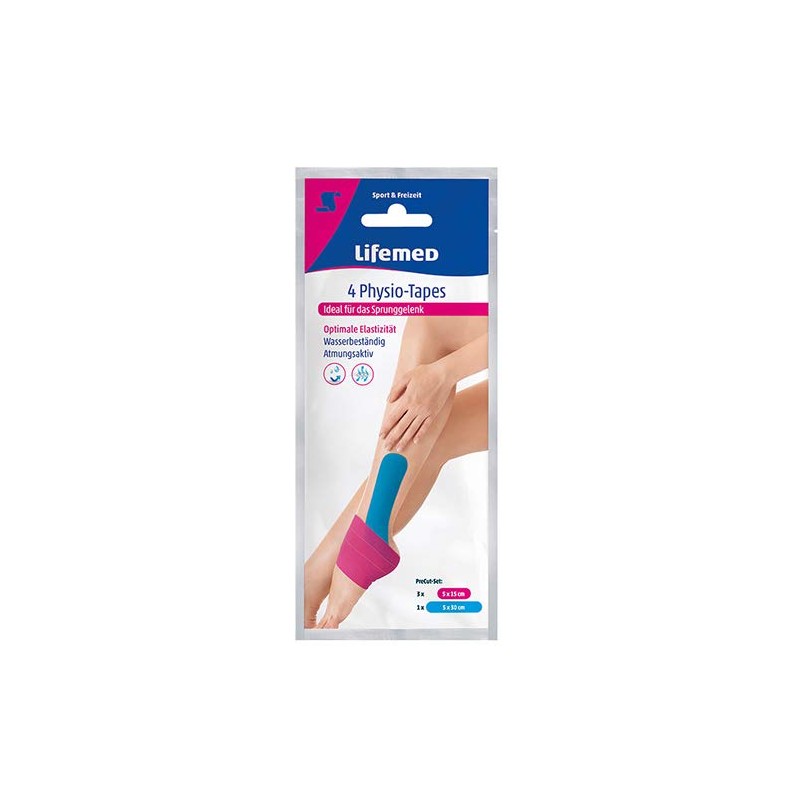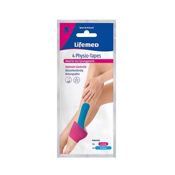 Lifemed - 4 Physio Tapes Pink, Blue, Ankle Joint 2 Sizes - for Optimal Elasticity and Freedom of Movement Pack of 2 (2 x 1 Item)