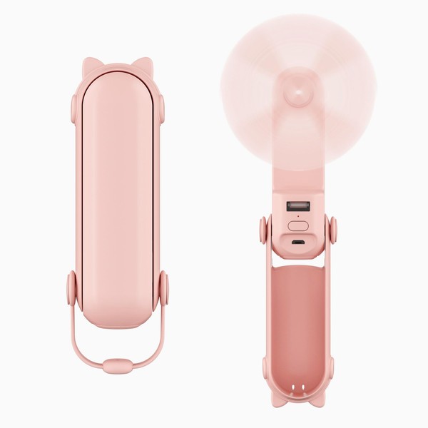 - 【Portable Design】The mini portable fan is super compact, lightweight and portable. Folding size: 4.47*1.41*1.45in, Weight: 4.2 oz. It's a handheld fan when it is unfolded 180°, and a desktop fan when it is unfolded 90 or 270°. Pocket size is perfect for indoor and outdoor use.