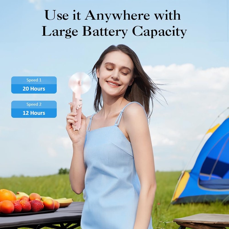 - 【2 speeds Mode】The fan has 2 speeds which puts out quite a bit of airflow and a nice breeze. With up to 20 hours of cooling time on a single charge, this mini handheld fan ensures you stay refreshed during travel, concerts, and outdoor adventures. Conveniently rechargeable via USB. Your cooling companion on summer vacation.