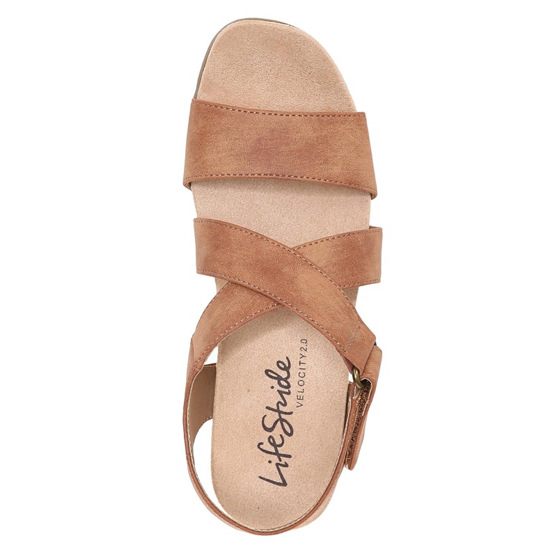 LifeStride Womens Sincere Wedge Sandal, Tan, 7 Wide US