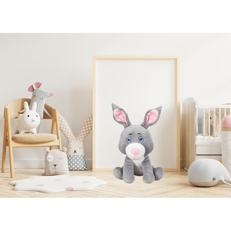 Lifestyle & More Baby Plush Toy Rabbit Grey/White Made of Super Soft Spandex Plush Height 21 cm