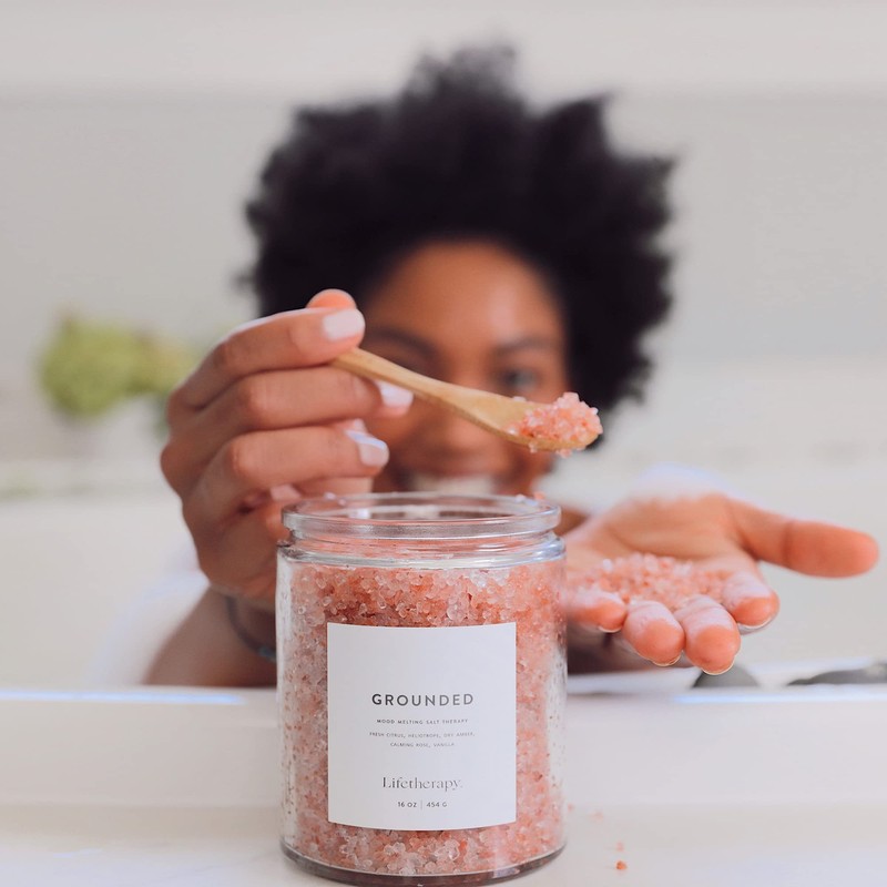 Lifetherapy Grounded Mood Melting Salt Soak | Pink Himalayan and Sea Salt with Moisturizing Sunflower Oil, 16 OZ