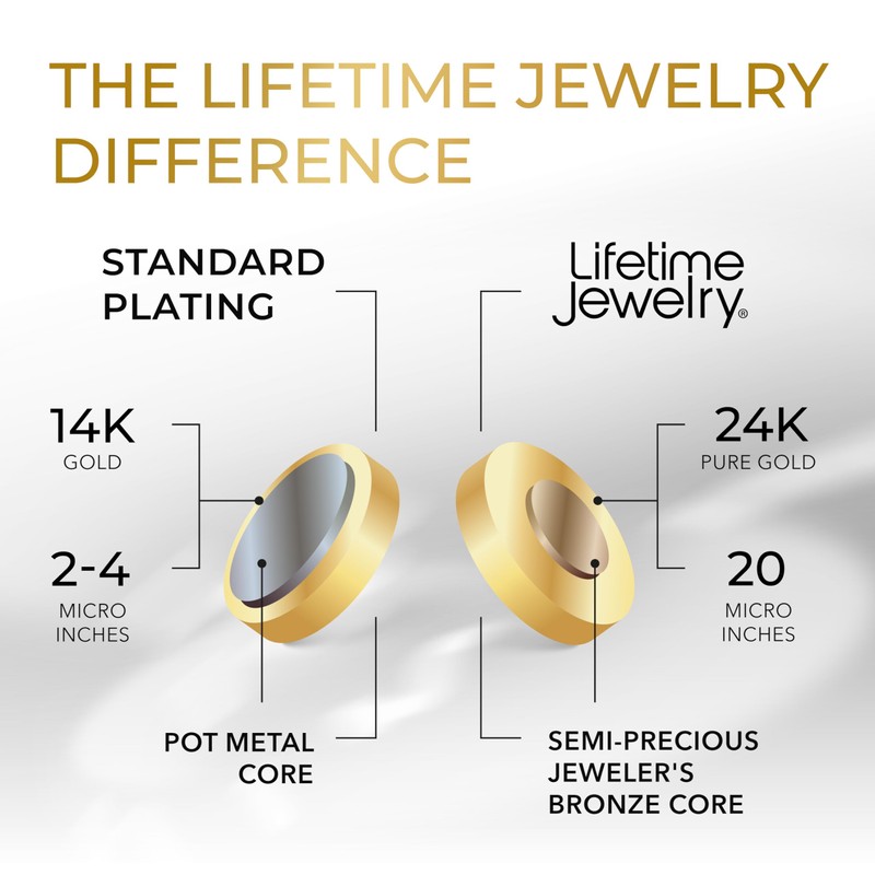 - Lifetime Jewelry is the Next best thing to solid gold, You can get ten of ours for every piece of 14k or 18k you buy