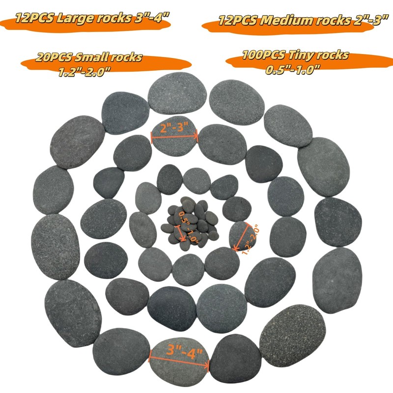 - Multi-Size-4 sizes are available ,Large ,Medium ,Small and Tiny stones .Satisfy your various DIY ideas . The stones about 20PCS 1.2"-2.0"/12PCS 2"-3"/100PCS 0.5" -1.0" ,12PCS large 3"-4" rocks in length.All great for rock art .These are fun to paint, also acrylic paint pens can be used on them for design and then spray acrylic sealer over paint.