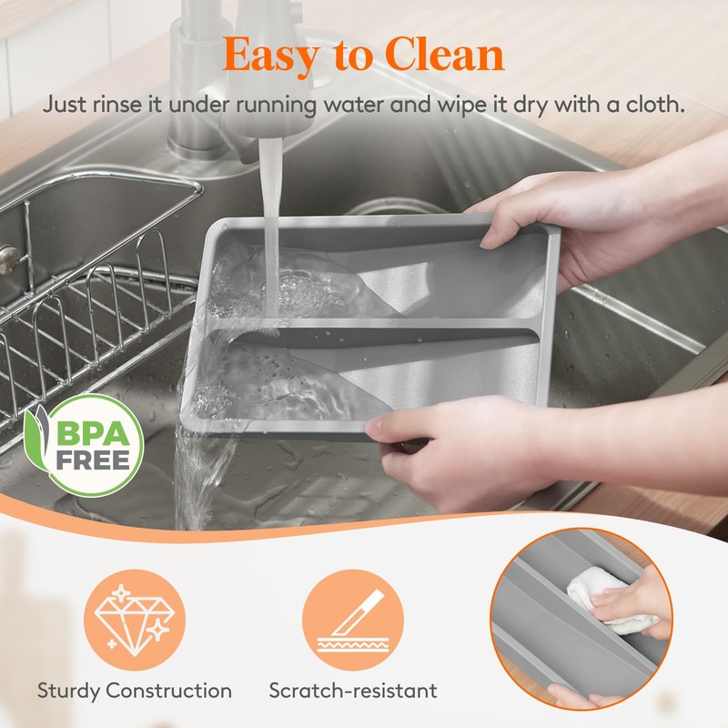 - Easy Access: Deepened compartment design ensures the front ends of utensils remain visible, making it easy to identify and quickly locate the silverware you need