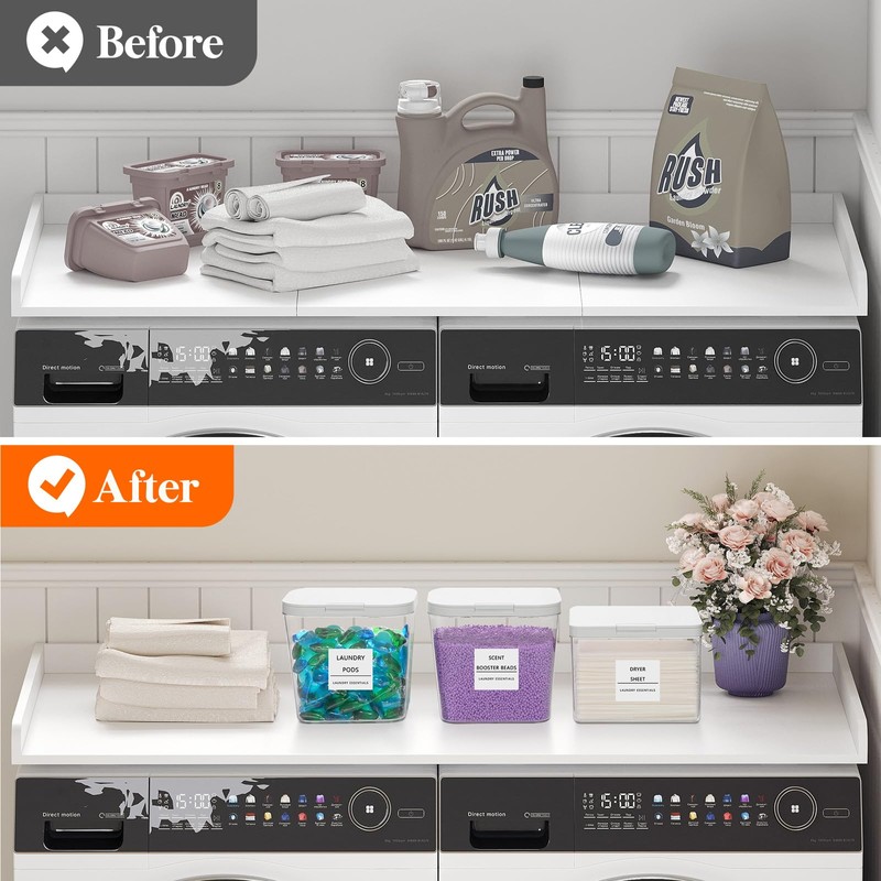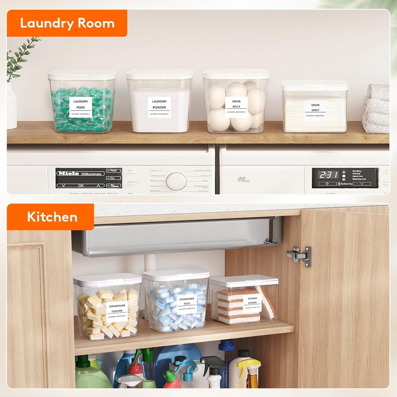 • Ideal Laundry Room Storage Solution: The transparent design and included labels allow for easy organization and quick access to your ladunry essentials; measuring scoops for precise dispensing detergent; get these containers and keep your ladunry room organized
