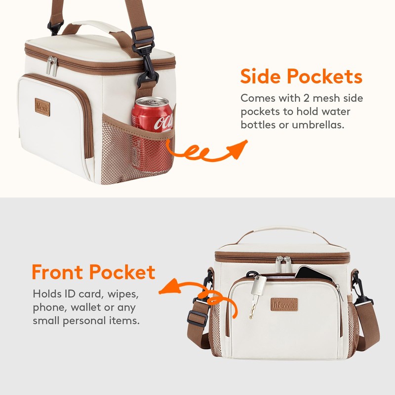 Lifewit Reusable Insulated Lunch Bag for Men, Lunch Box Women, Portable Cooler Freezable Soft Lunchbox Leakproof with Adjustable Shoulder Strap for Adult for Work Picnic or Travel, Cream 9L