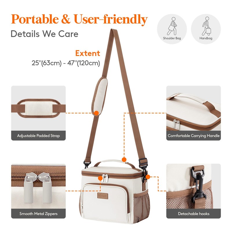 - Convenient & Portable: Insulated lunch bag with padded shoulder strap and top handle for easy carrying. Wide lid opening for convenient packing. Ideal for office, day trips, picnics, camping, BBQs, beach, and sports. Suitable for both men and women.