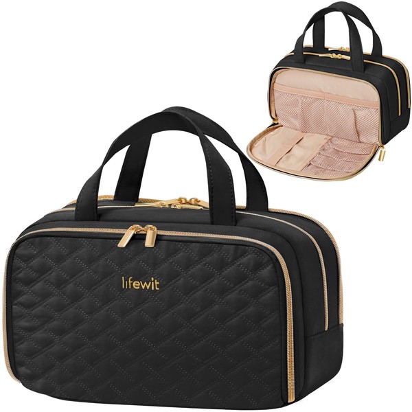 Lifewit Travel Toiletry Bag with Handle, Large Wide-Open Makeup Cosmetic Travel Bag for Toiletries with Multi-compartments, Vacation Essentials, Black, 5L