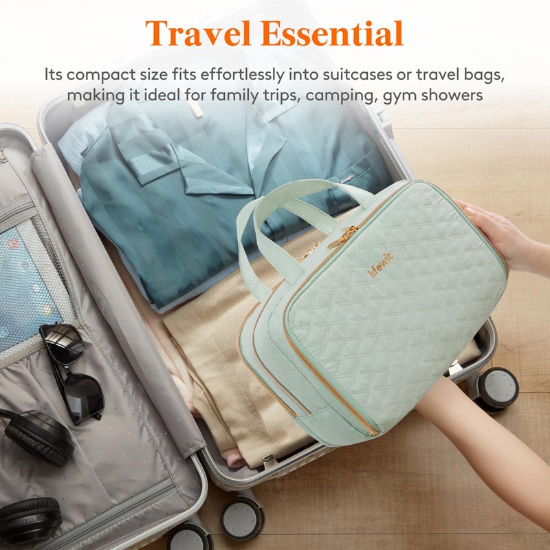Lifewit Travel Toiletry Bag with Handle, Large Wide-Open Makeup Cosmetic Travel Bag for Toiletries with Multi-compartments, Vacation Essentials, Mint Green, 10L