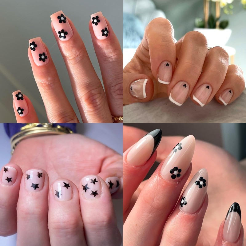 Lifextol 30 Sheets Flower Nail Stickers Charms for Fake Nail Design, Flower Stickers Decals for Press Nails Decor, Black Fingernail Sticker Nails Art Supplies, Kids Self-Adhesive Gel Sticker