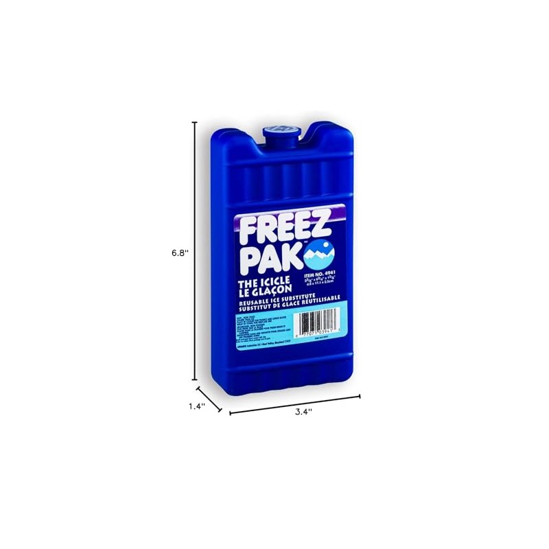• 3 PACK: Includes 3 Freez Paks, Reusable Gel Ice Packs measures 3.4 inches x 6.8 inches x 1.4 inches.