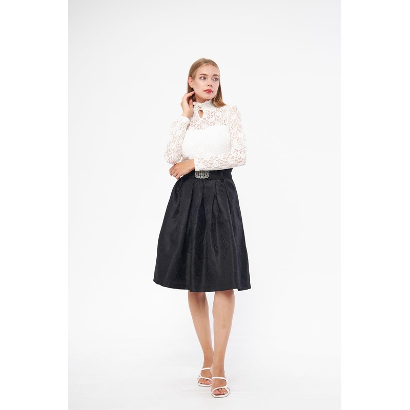Lifos 0800 Dirndl Skirt, Costume Skirt with Belt Paisley Pattern, Oktoberfest, black, 42
