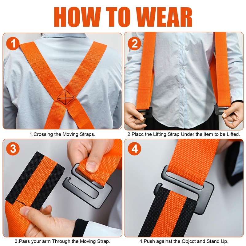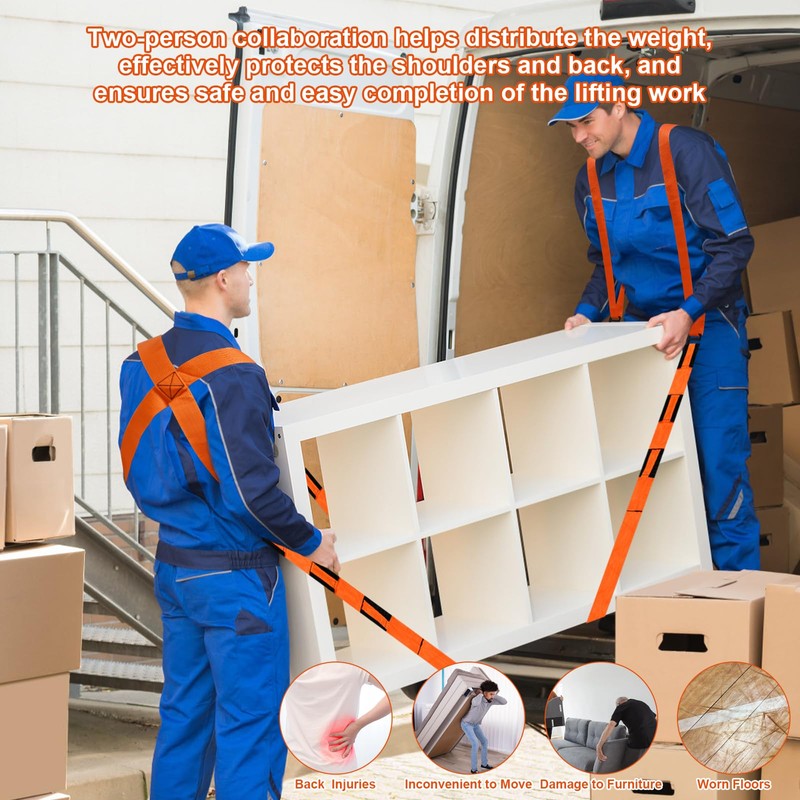 - ✔Safe and Comfortable: The carrying straps are equipped with cushioning pads and auxiliary shoulder straps to ensure safe and easy carrying of heavy furniture. The two-person collaborative mechanism effectively distributes the weight, relieves pressure on shoulders and back, and reduces the risk of injury.