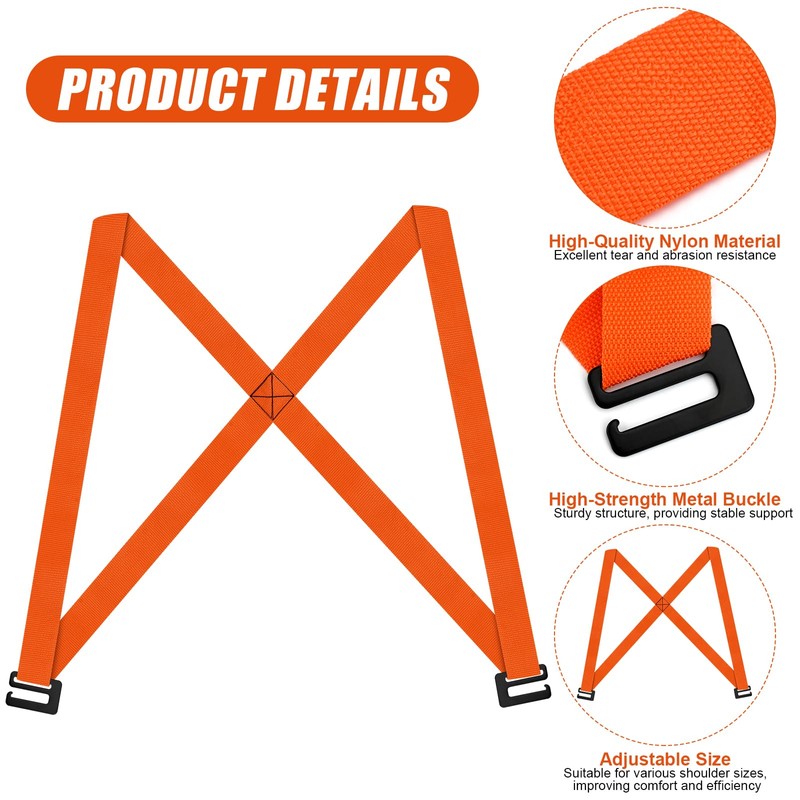 - ✔Adjustable Straps: Metal buckles adjust the length of the auxiliary shoulder straps, suitable for all shoulder sizes, allowing you to easily transport large items during lifting work and increase your work efficiency. Webbing width: 4.5 cm, auxiliary belt length: 2.7 metres.