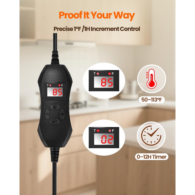 - Precision Temp & Timer Control (50–113℉, 0–12H): Take full control of your fermentation. The intuitive digital panel lets you set the exact temperature and timer for any recipe, from sourdough to brioche. No more guessing—just reliable, repeatable results