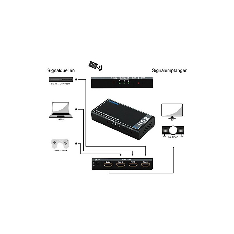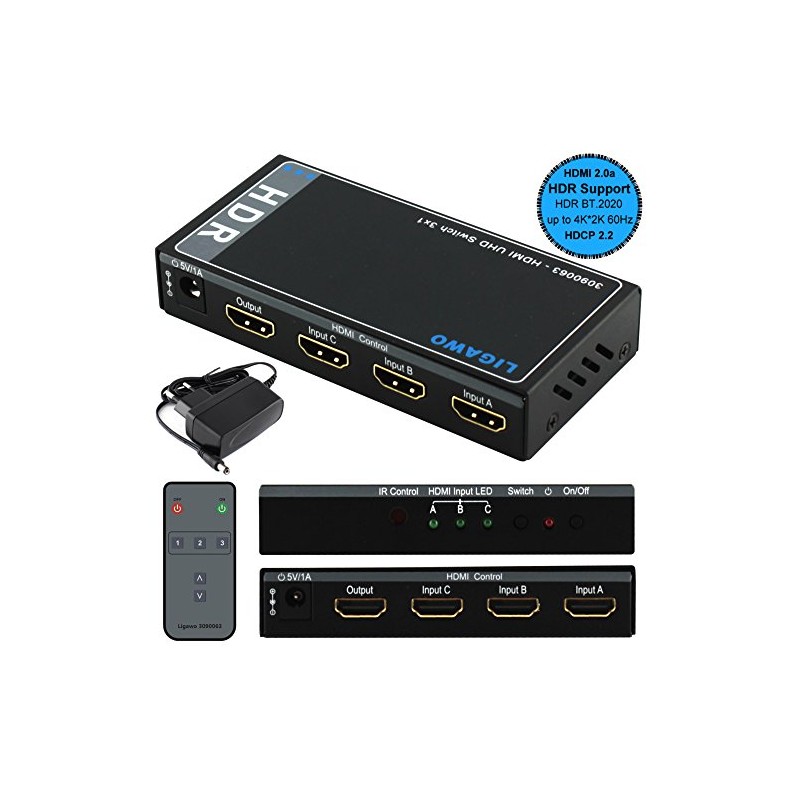 - Ligawo HDMI switch 3x1 with HDMI 2.0a premium chipset and HDR support | HDCP 2.2, FullHD, UHD, CEC, DeepColor up to 36 bit | compatible with older and HDMI 2.0a following versions