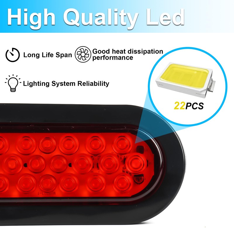 - Premium LED: These 6 inch oval trailer brake lights feature 22 super bright LEDs and can emit ultra bright red light. Effectively enhances visibility and improves driving safety