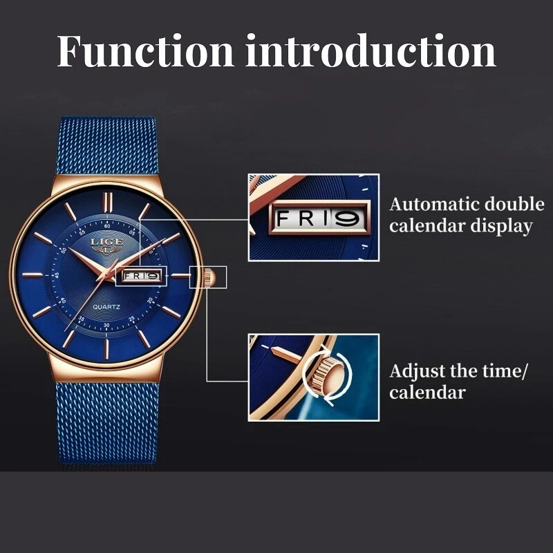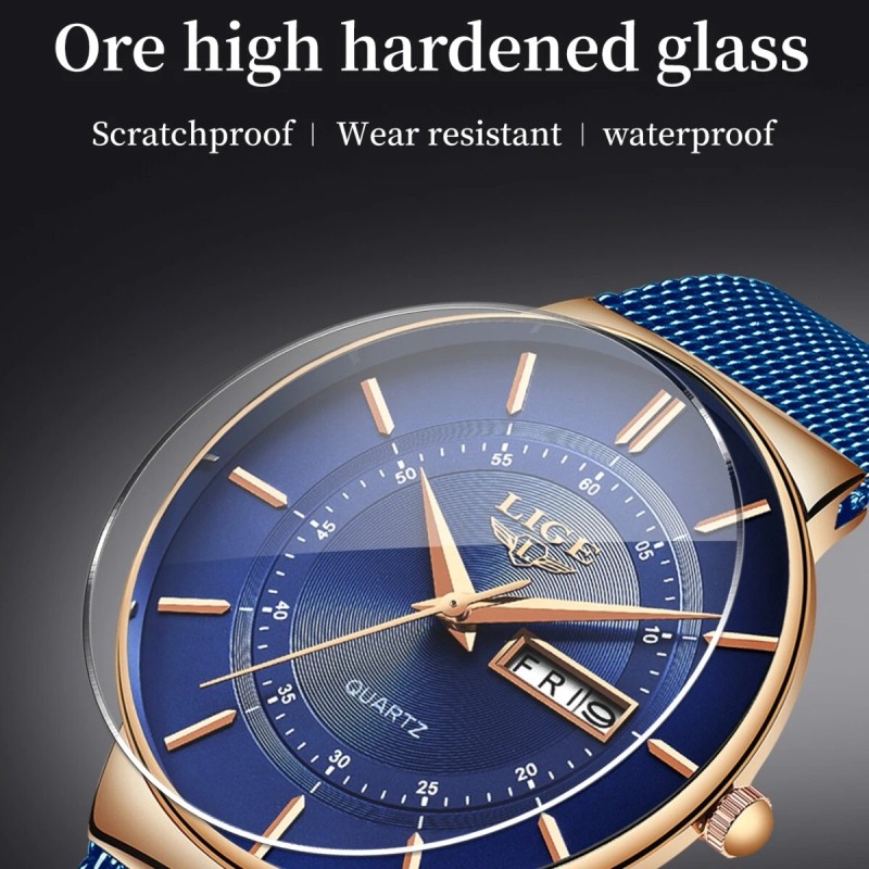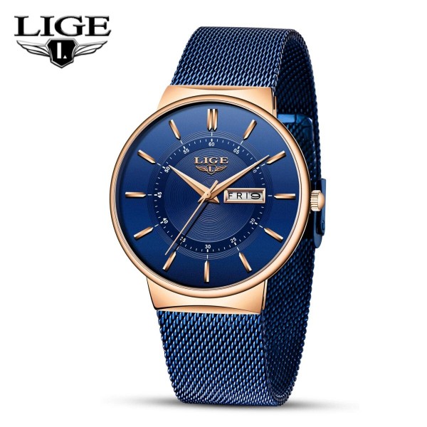 Lige Luxury Ultra-thin Men Watch Quartz Date Week 3ATM Waterproof Steel Wrist Watches