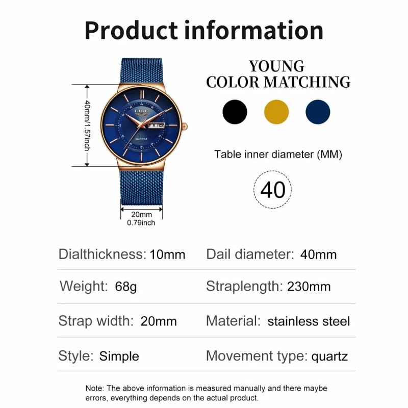 - Dial Color: Blue, Gold