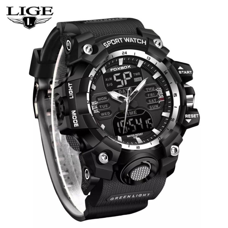 Lige Men's Watch Quartz Date Alarm Digital Luminous 5ATM Waterproof Boy Wrist Watches