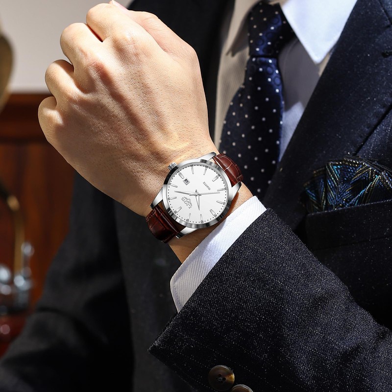 - Material composition of the watch: these men's watches use a high-strength glass mirror, offers a variety of colours and design options and is paired with a high-quality genuine leather strap, which is comfortable and durable. The case is made of robust and corrosion-resistant stainless steel and the simple dial design gives the watch a stylish and classic look