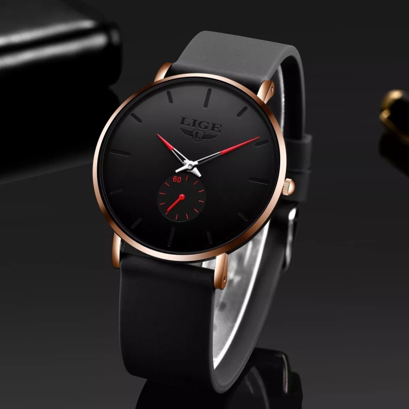 Lige Men Watch Ultra-thin Quartz Second Dial 3ATM Waterproof Women Daily Wristwatch