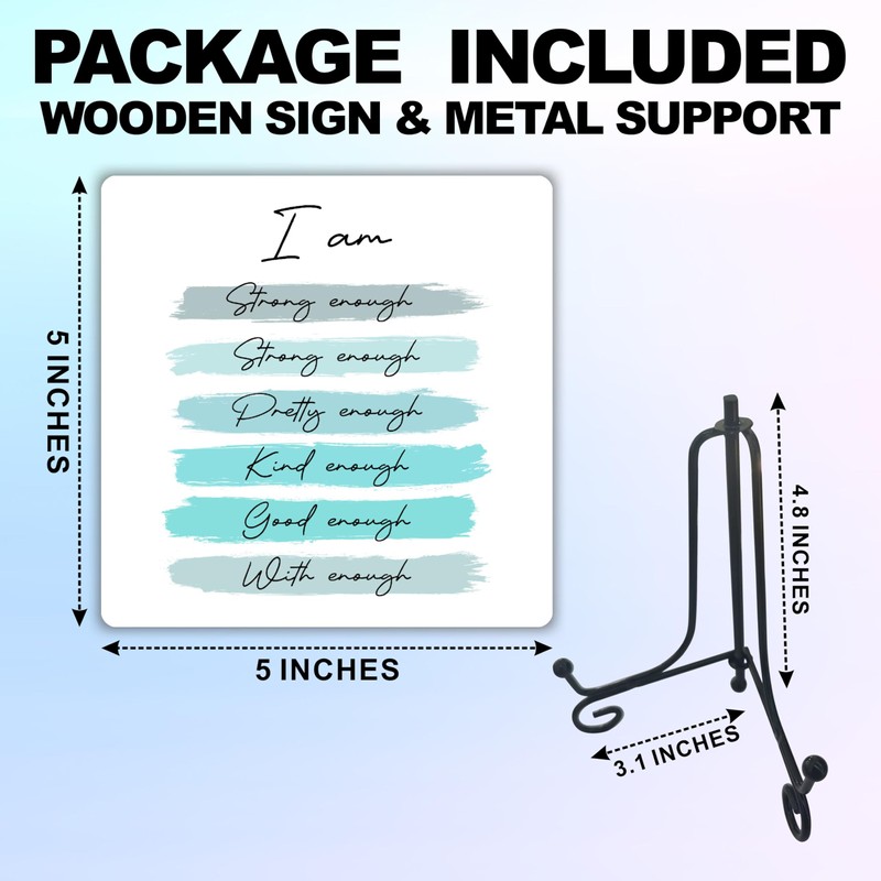 Light Blue Inspirational Quote Sign, 5 Inch Wood Sign With Stand, I AM With enough, Inspirational Desk Ornaments, Motivational Gift For Boy & Girl, Bedroom School Desk Shelf Decorate Accessory - A23