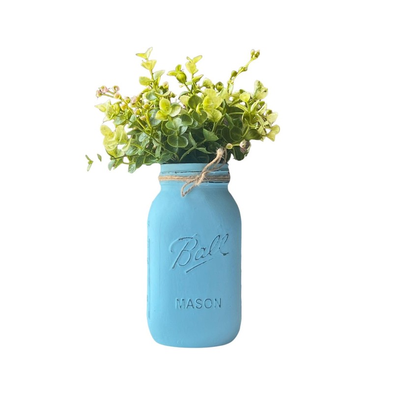 - Hand-Painted Rustic Charm – This 32 oz light blue mason jar is hand painted and gently distressed for a modern farmhouse finish. Filled with realistic greenery, it’s the perfect accent for baby boy showers, baptisms, nurseries, and everyday home decor.