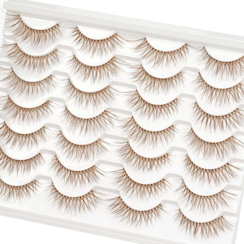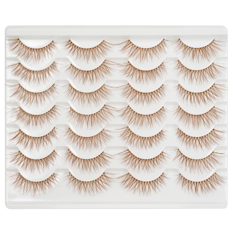 Light Brown Eyelash False Lashes - 14mm Natural Light Brown False Eyelashes C...