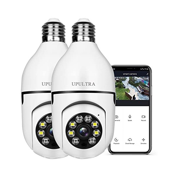 Light Bulb 1080P Security—Wireless Camera WiFi Smart for Home Surveillance Screw into The E27 Light Bulb Socket Spotlight Alarm Color Night Vision Two-Way Talk Motion Alarm PTZ 360 Degree(2packs
