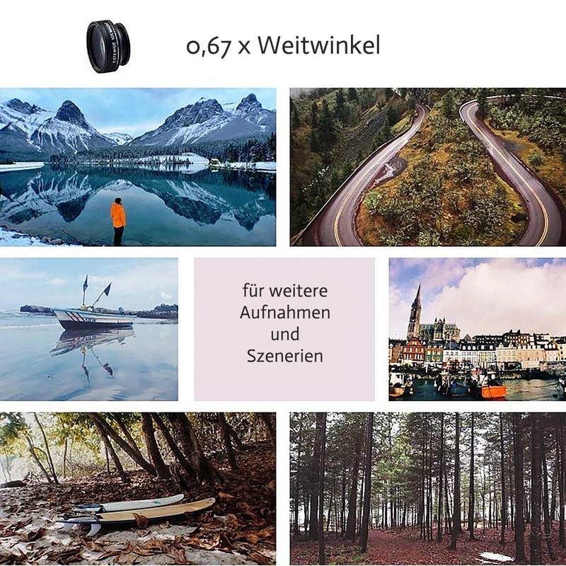 - NEW PHOTO EFFECTS FOR SMARTPHONES Completely new recording options and photo effects for your mobile photography The lens set is ultra-light and can be easily transported using the included nylon bag.