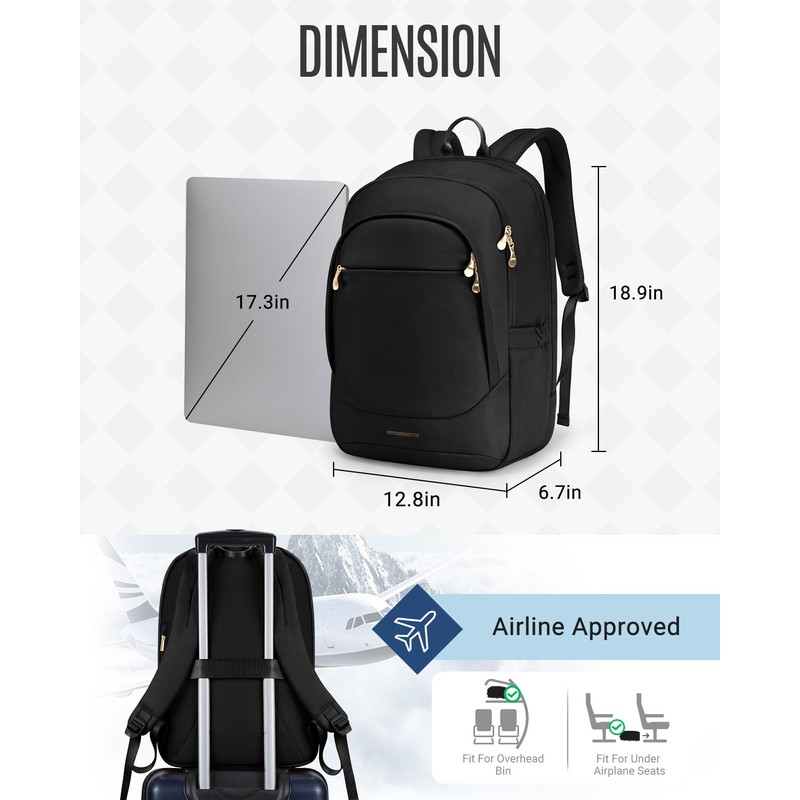 LIGHT FLIGHT Travel Laptop Backpack for 17.3" laptop, Carry on Backpack with USB Charging Hole, Water Resistant College Bookbag, Large Capacity Computer Backpacks for Work, Black