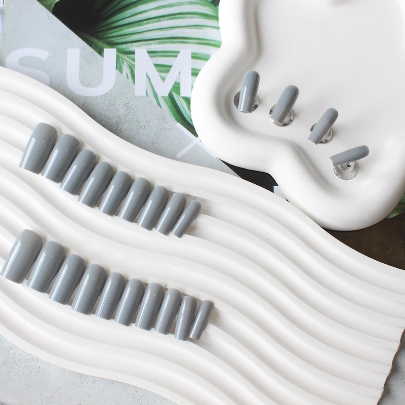 Light Grey Press On Nails Medium Long Square, Xcreando Medium Coffin Nails Acrylic Press ons Glue on Nails, Solid Color Fake Nail for Women, Natural Thick Artificial Stick on