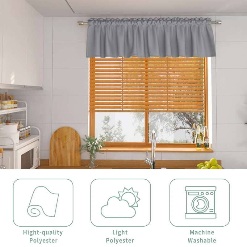 Light Grey Valance Curtain 12 inches Small Short Mini Window Curtain Panel Living Room Darkening Blackout Kitchen Curtain Toppers Bedroom Triple Weave 1 Panel Rod Pocket 60"x12"