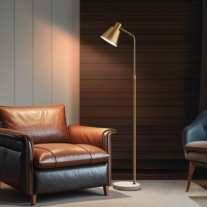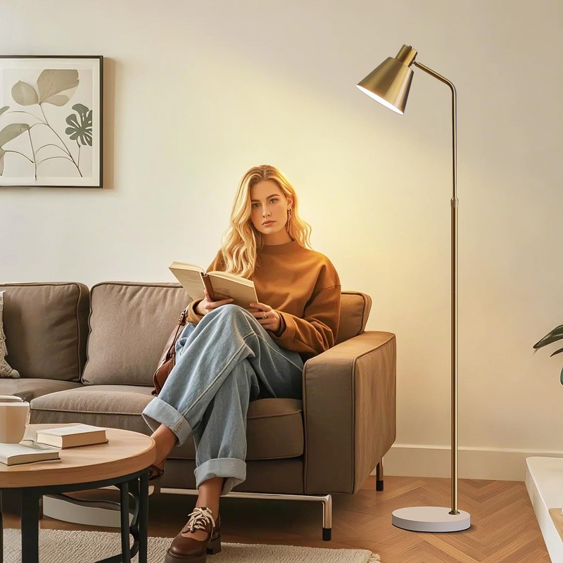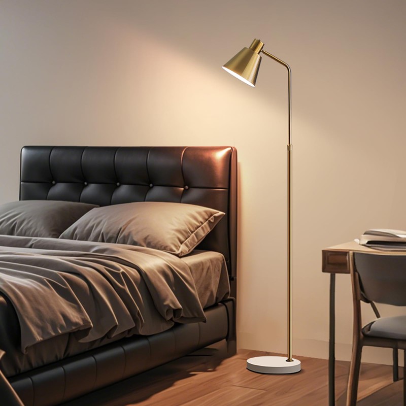 Illuminate Your Space with Elegance & Precision Elevate your home’s ambiance with this sleek golden floor lamp, expertly crafted to blend minimalist aesthetics and functional versatility. Featuring a durable iron frame with a lustrous gold finish, it effortlessly complements modern, industrial, or Scandinavian interiors while providing studio-quality lighting for reading, working, or relaxing. Why This Lamp Stands Out: Adaptive Lighting Control: The height-adjustable stand (57"-65") and 360° rotatable gooseneck head let you direct light precisely—ideal for illuminating books, accenting decor, or creating cozy mood lighting. Eye-friendly LED bulb: equipped with a 12-watt strobe-free eye protection light source, providing three color modes: Warm white (3000K) for a warm atmosphere, warm white light (4000K) for reading and relaxation, and cool white (5000K) for focusing tasks to reduce eye fatigue during long-term use Sturdy & Stylish Design: The weighted iron base ensures stability, while the conical fabric shade softens glare, making it perfect for bedrooms, living rooms, or home offices. Perfect for design enthusiasts and practical homeowners alike, this lamp combines energy efficiency (80% savings vs. incandescent bulbs) with easy assembly—no tools required. Backed by a 1-year warranty, it’s a timeless addition to any space craving both style and substance.