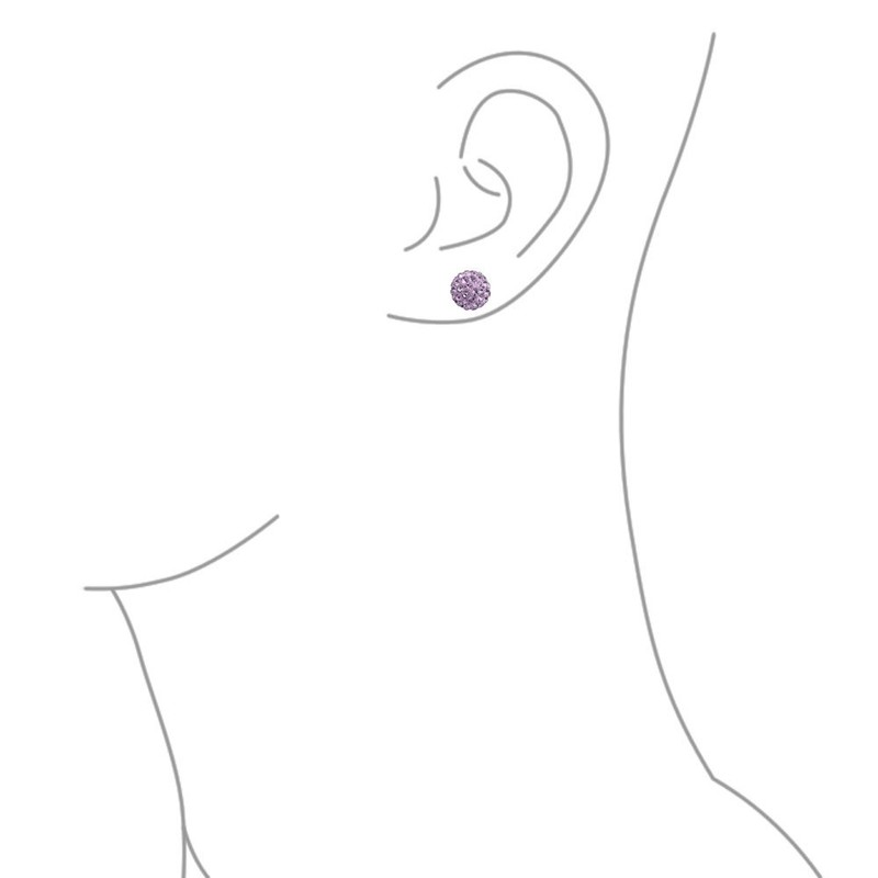 Light Purple Lavender Pave Crystal Disco Ball Stud Earrings for Women - Round, Simple, Basic Design - .925 Sterling Silver - 8MM