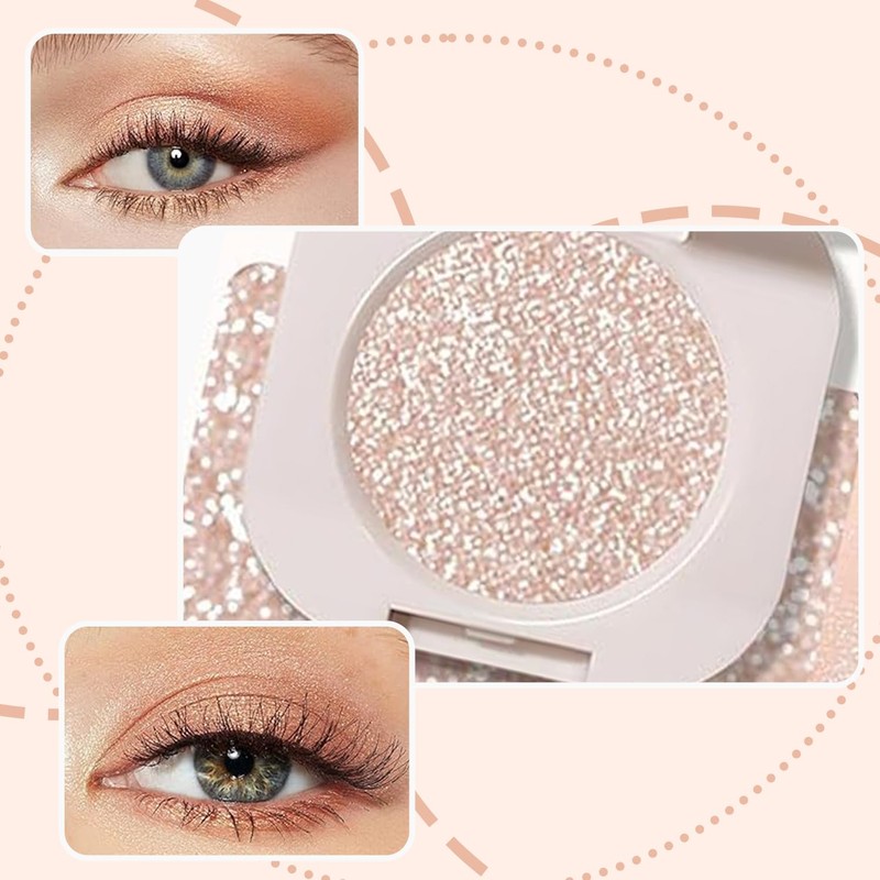 Light Shimmer eyeshadow, pressed glitter eyeshadow, Pressed Powder Single Vegan Eyeshadow; Talc, Paraben & Cruelty Free, Pigmented Waterproof Eye Shadow Pallets for Women Smooth & Easy to Blend