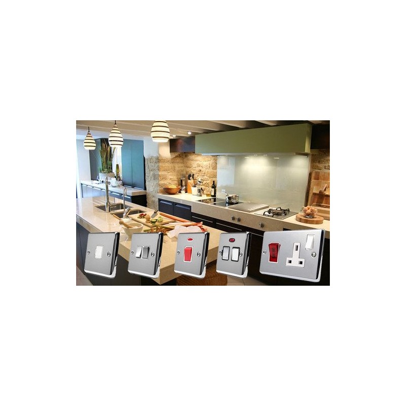 - Polished Mirror Chrome Finish Metal Plate - Black Insert - Plastic Rocker Switches