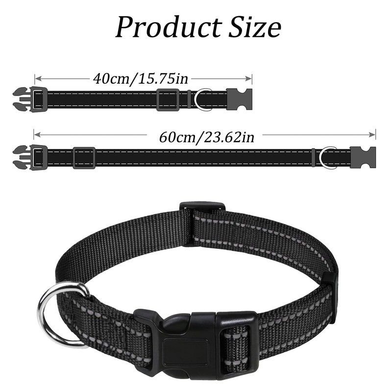 - Adjustable Dog Collar:Our adjustable dog collar suitable for neck size 40-60cm/15.75-23.62in.Adjustable plastic buckle to adjusts the best size.This size is suitable for most pets.