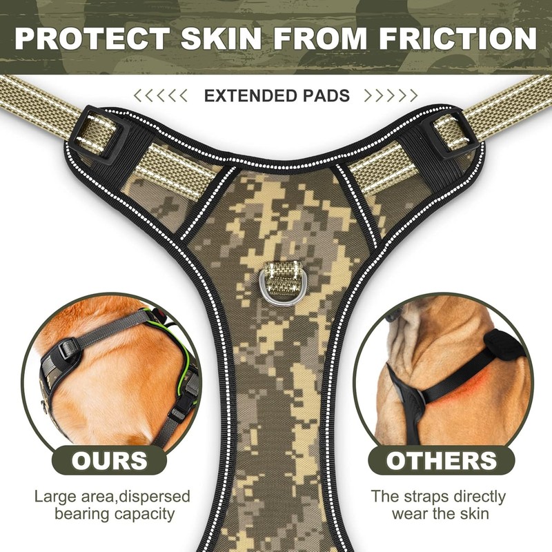 - 【3 Ways to Control】1.No Pull Dog Harness D-Ring on the front clip - if you attach dog leash to this D-ring, they will turn around instead of pulling you forward when they pulls. After several trys, they will learn not to pull. 2.Universal back D-ring - often used after dog learns not to pull. 3.Neoprene Padded Handle - Powerful control by hand, or when you need to pick your dog up.