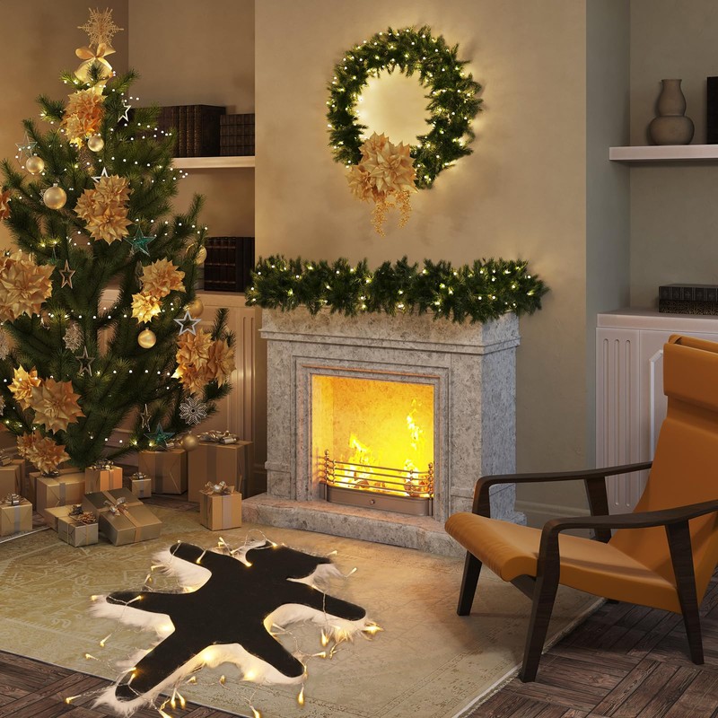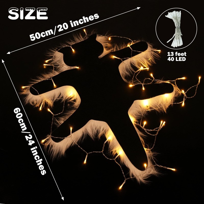 - Size: This Christmas rug measures 24" x 20" and includes a 13-foot long string of warm white LED Christmas lights. It has 40 LED beads and requires 3 AA batteries to light up (not included)