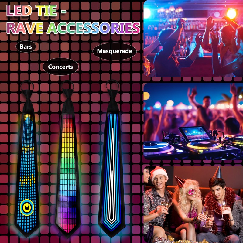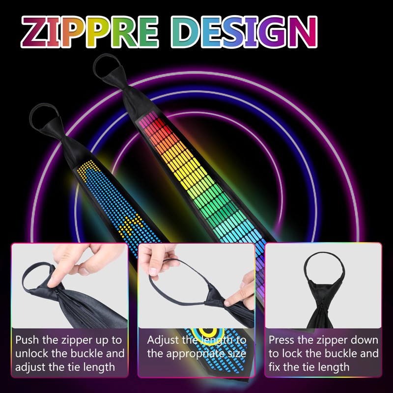 • Neon ties come in a variety of styles: Our LED ties have five lighting modes: constant light/slow flash/fast flash/gradient light/sound control mode. The sound control mode allows the lights to flash and dance with the rhythm of the music, The light it emits is enough to make you stand out from the crowd
