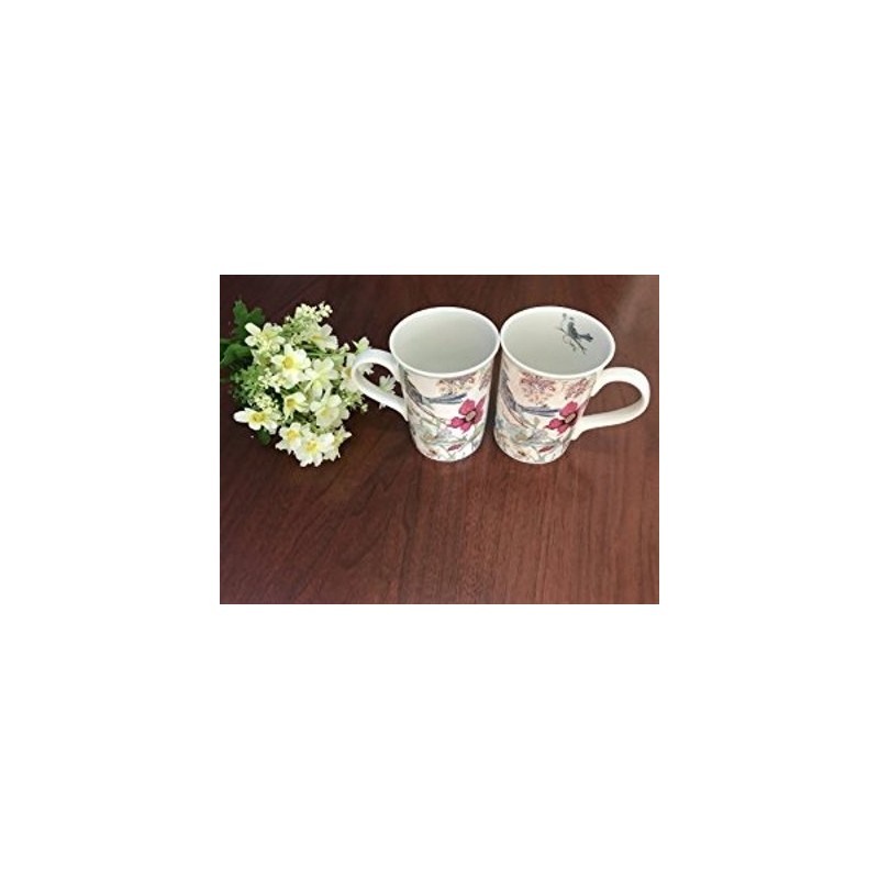 - ''' 2 Mugs set in a reusable handmade in attractive gift box (with ribbon + bead), in spring bird design#||# Made from Bone China means light weight (11.2 Ounce each mug) and translucency with strength and smooth luxurious feel.#||# Food safe, microwave & dishwasher safe#||# One Bone China Set Contains: 2 Mugs in spring bird design#||# Packed in Beautiful gift box to make the perfect present.'''