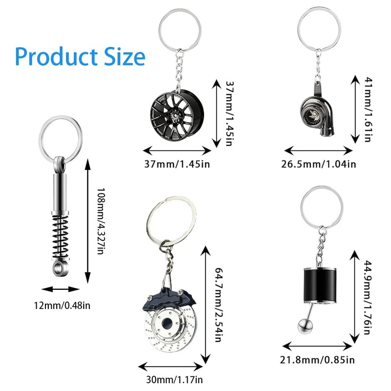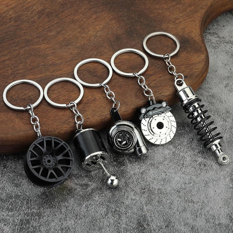 - Car part model keychain: comes with 5 car part key rings, 1 x turbo key ring, 1 x six-speed manual transmission key ring, 1 x damping, 1 x wheel tyre rim key ring, 1 x brake disc, with sufficient quantity and rich styles to meet your daily use.