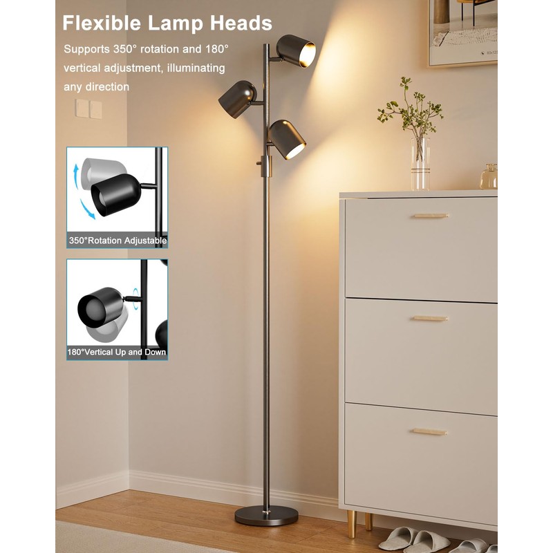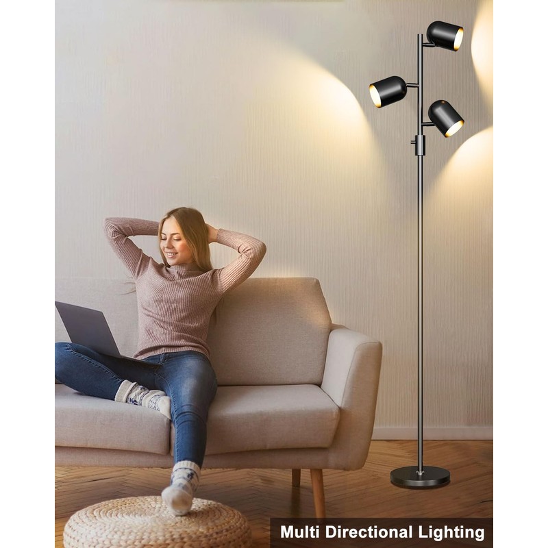 Lightdot 63IN Dimmable (Brightness Adjustable) Black Floor Lamp, Tall Standing Lamps with 3 Adjustable Rotating Lights, 9W E26 LED Bulbs Included, Tree Floor Lamp for Living Room Bedroom