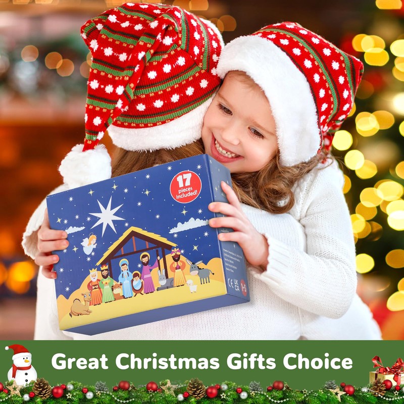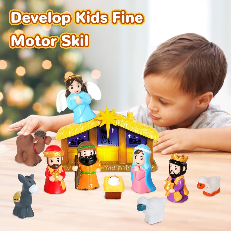 - 【Light-Up Nativity Set】Bring the Christmas story to life! This kids nativity set includes a lighted stable that glows warmly, making it exciting for children and toddlers to explore the true meaning of Christmas.