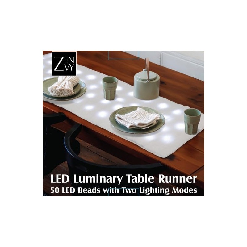 • 50 Brilliant LED Lights - Illuminate your dining space with 50 energy-efficient LED lights, carefully woven into the fabric of the table runner for a stunning and festive glow